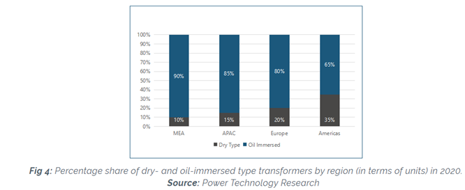 與此同時(shí),全球92%的變壓器安裝基座(按單位計(jì)算)是油浸變壓器,干式變壓器只占8%。亞太干式變壓器的年市場(chǎng)占有率(以收入計(jì))為世界上其它地區(qū)之最。